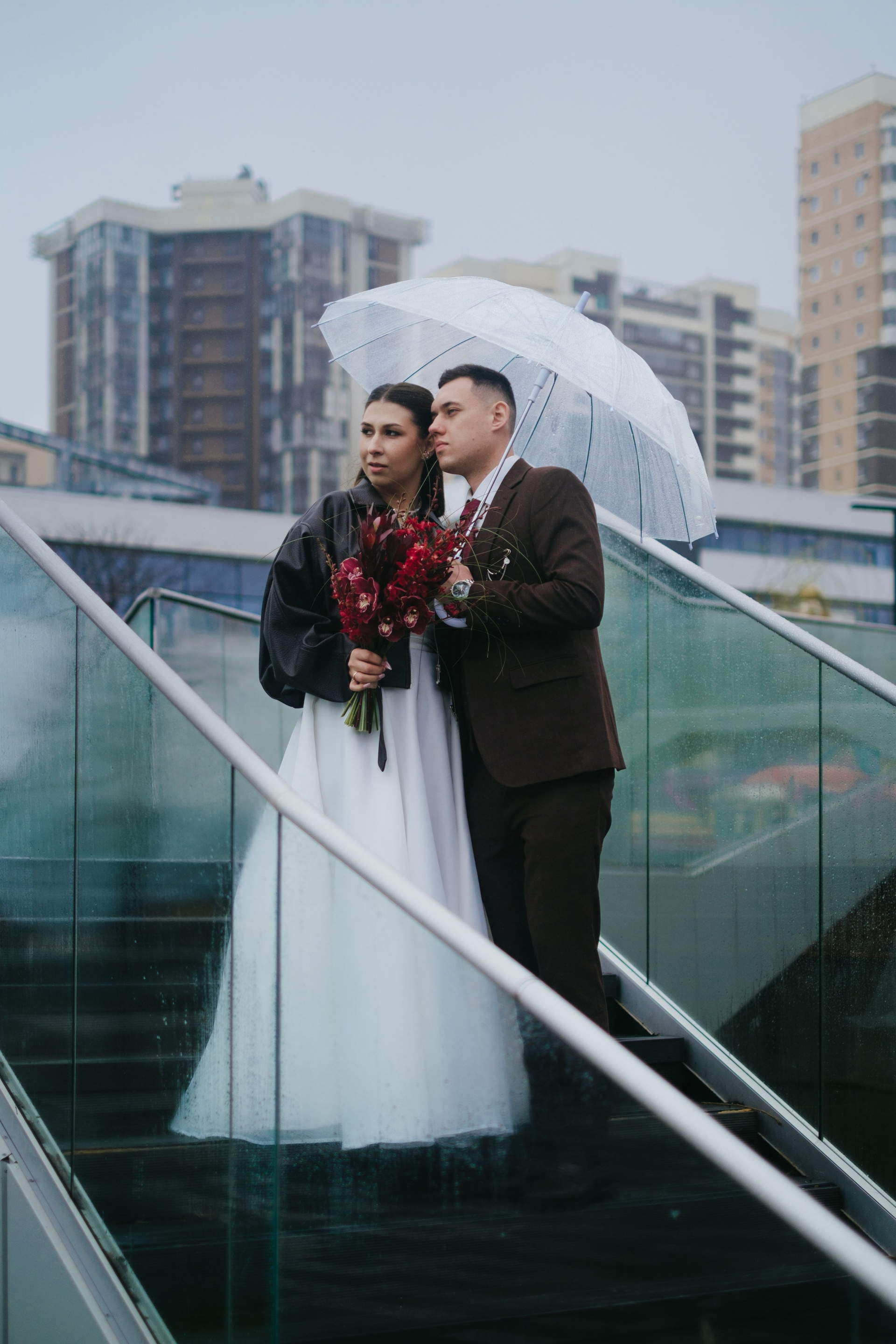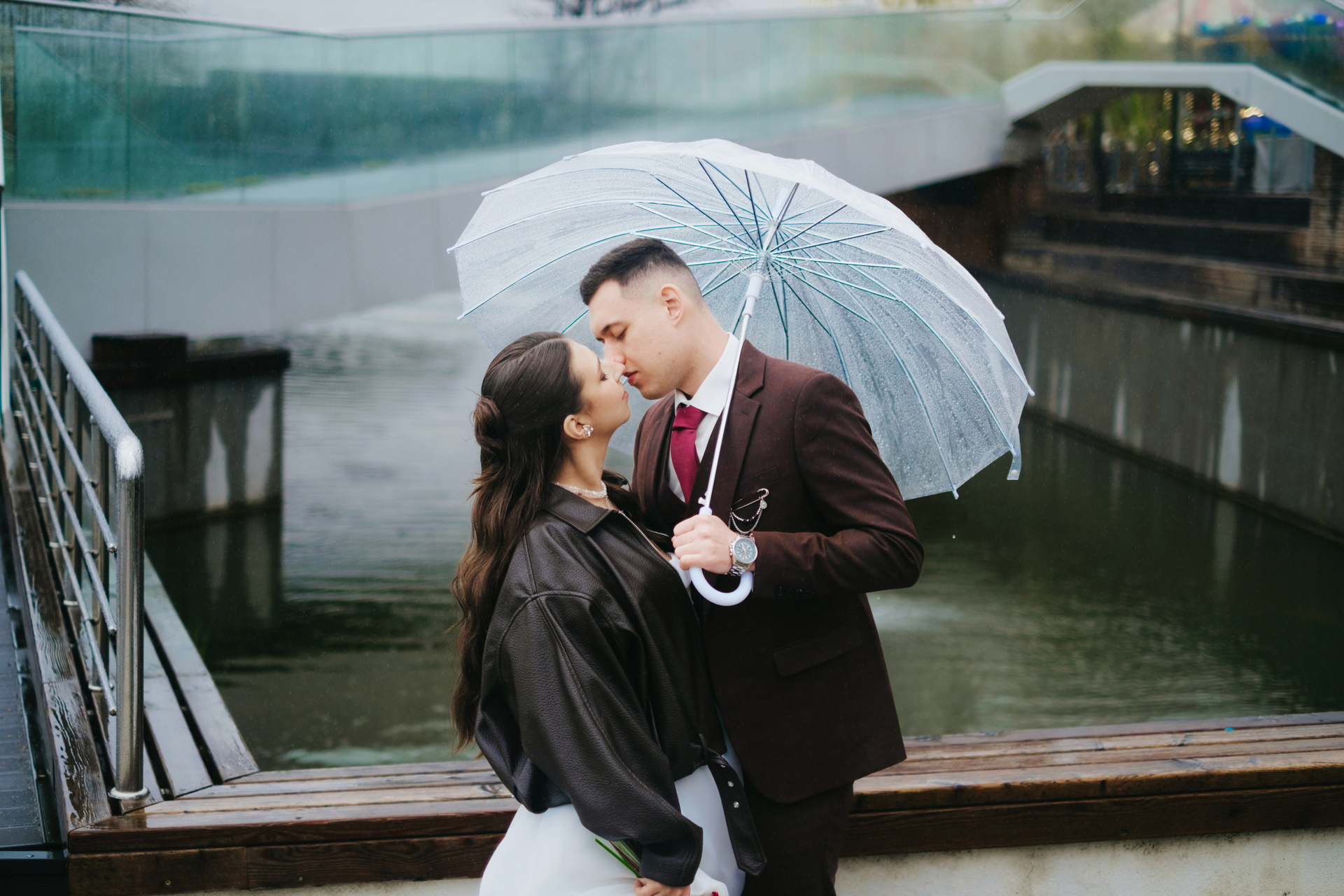 На фотографиях — свадьба Виталия и Анастасии в Новороссийске, которую не испортил даже дождливый апрельский день. Вместо привычного солнца — атмосферные лужи, блеск мокрого асфальта и прозрачные капли на зонтах. Дождь добавляет кадрам особую нежность: отражения в лужах, уютные объятия, искренние улыбки вопреки погоде. Это история о том, что настоящая любовь не боится капризов природы — она делает их частью своего уникального сценария. Свадьба у моря в пасмурный день запоминается даже больше, чем в солнечный: меньше суеты, больше чувств. Идеальный пример, как довериться моменту и получить живые, дышащие романтикой снимки.